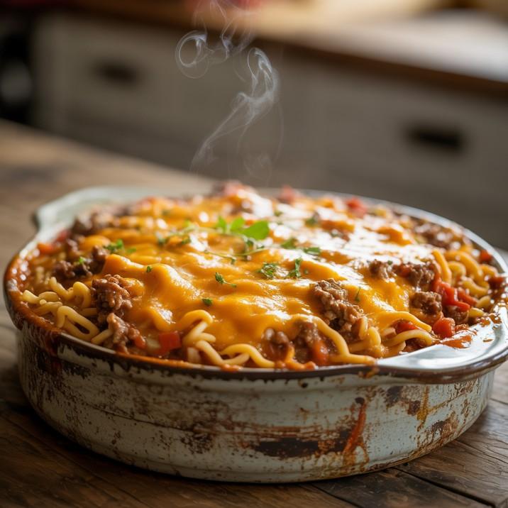 Great question. It’s basically a mash-up of ground beef, pasta, cheese, and sauce baked to bubbly perfection. Think lasagna’s no-fuss younger cousin who just wants to hang out, chill, and feed everyone like a champ.